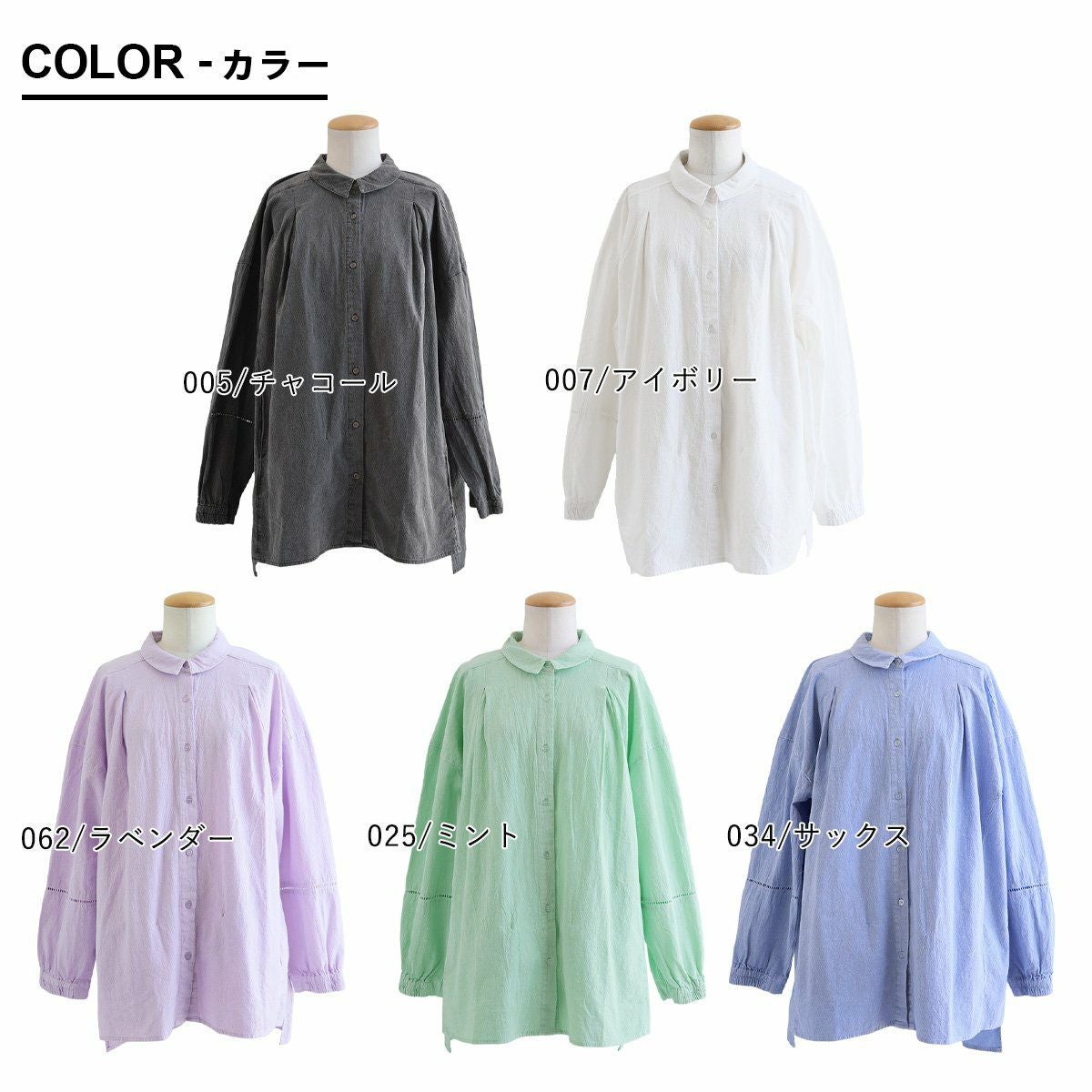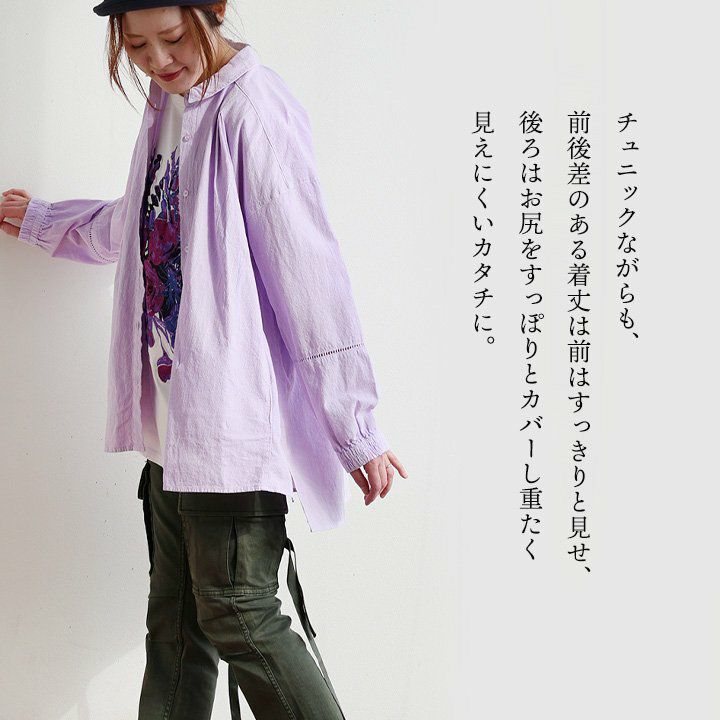 他の画像を見る 隠したいところをしっかり隠して、「カッコよく」リラックス。 シャツ チュニック 長袖 レディース ちび衿 綿100 コットン ピグメント 褪せ色 ボイル風 袖ゴム お尻隠れる ゆったり 体型カバー すっきり カジュアル 春 パティ 2~3日でお届け 販売価格 ¥ 6,490 税込 カートに入れる お気に入りに登録する