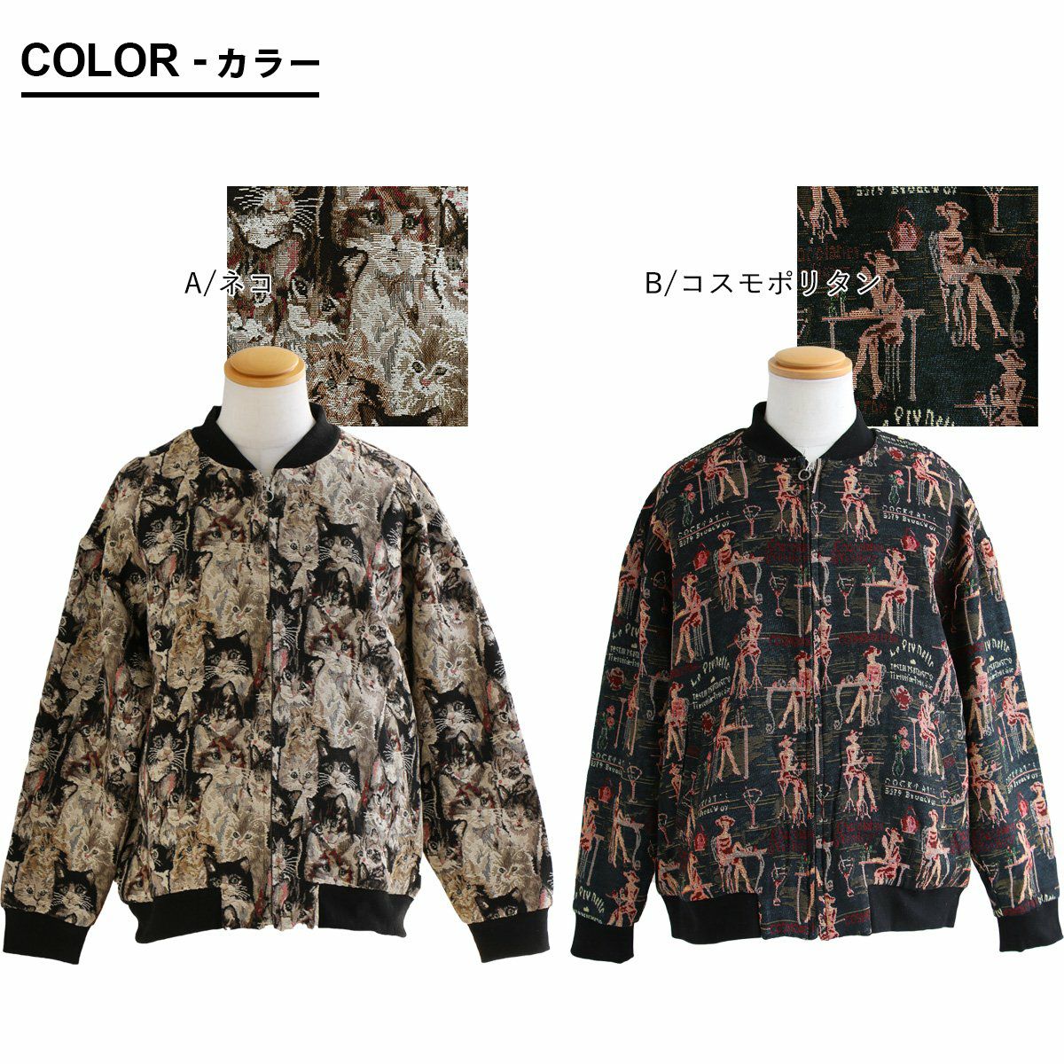 他の画像を見る 見入ってしまう、アートのような「綺麗さ」。 ブルゾン 長袖 メンズ レディース ゴブラン織り 総柄 猫 ネコ アンティーク しっかり生地 タフ リブ切り替え 大きいサイズ 体型カバー カジュアル 秋 冬 パティ 2~3日でお届け 販売価格 ¥ 12,980 税込 カートに入れる お気に入りに登録する