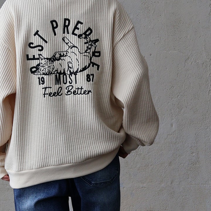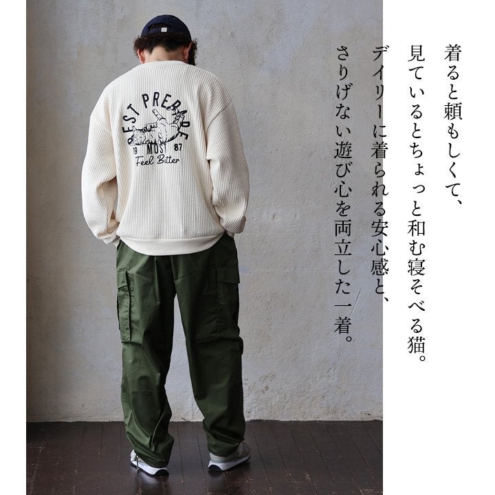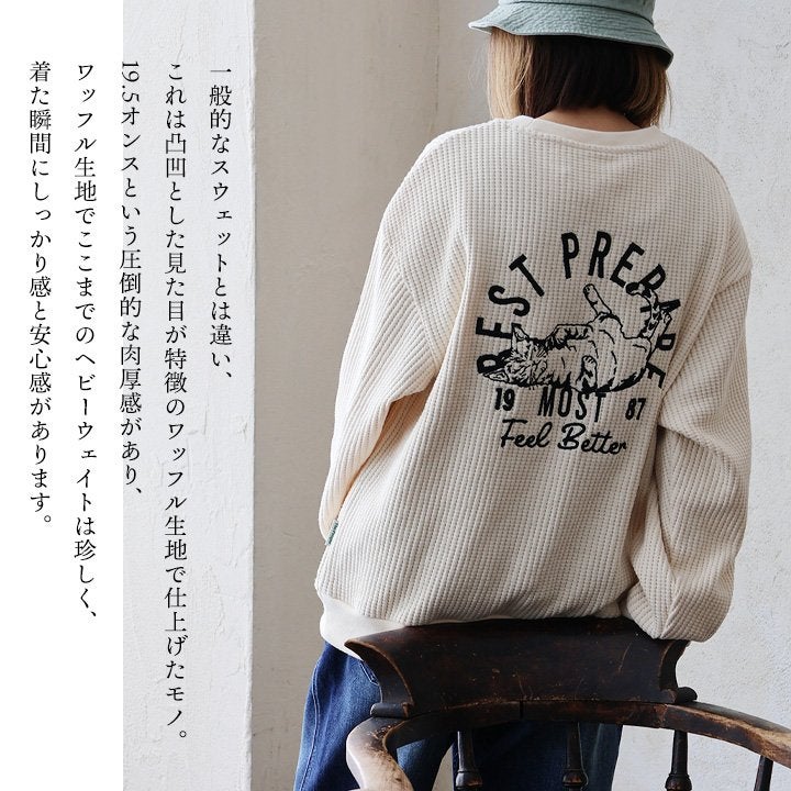 他の画像を見る タフなワッフルに、寝そべる猫。 スウェット トレーナー 長袖 メンズ レディース クルーネック ヘビーウェイト ワッフル コットン ポリエステル ロゴ 刺繍 猫 ネコ アニマル 通気性 大きいサイズ カジュアル パティ 2~3日でお届け POINT5倍 販売価格 ¥ 7,590 税込 カートに入れる お気に入りに登録する