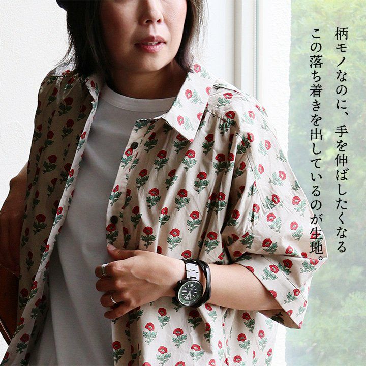 他の画像を見る 目に留まる存在感。なのに、素朴で落ち着きあるギャップ。 シャツ 5分袖 レディース セットアップ 花柄 総柄 プリント 綿100 コットン 薄手 通気性 軽い 涼しい 大きいサイズ 体型カバー 着痩せ カジュアル 夏 パティ sandy サンディー 2~3日でお届け POINT10倍 販売価格 ¥ 8,250 税込 カートに入れる お気に入りに登録する