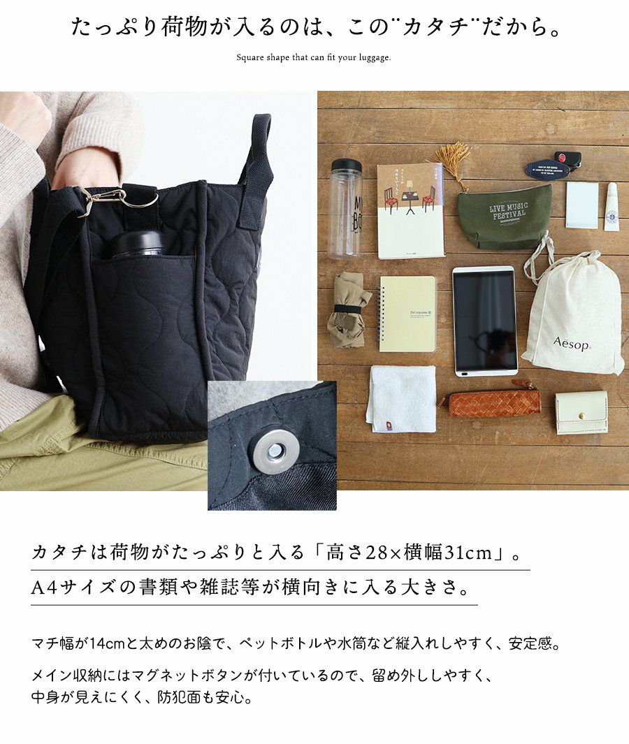 他の画像を見る たくさん入って、温かみもあって、「自分好み」に持ち歩ける。 SCANDINAVIAN FOREST スカンジナビアンフォレスト トートバッグ ショルダーバッグ バッグ カバン 鞄 レディース 2WAY スクエア柄 中綿 キルティング A4 大容量 ナイロン 裏地付き 撥水 しっかり生地 丈夫 カジュアル 秋 冬 パティ 2~3日でお届け 販売価格 ¥ 4,290 税込 カートに入れる お気に入りに登録する