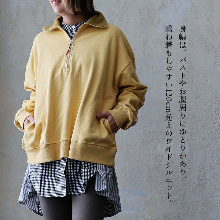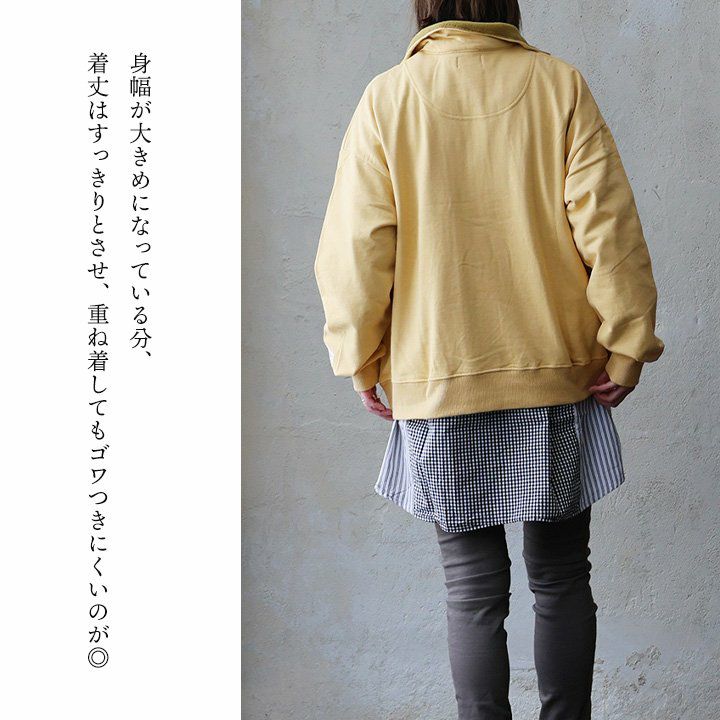 他の画像を見る 気負わず着られて、首元には「暖か」な仕掛けを。 スウェット トレーナー レディース スタンドネック ハーフジップ 無地 襟裏フリース 綿100 コットン ミニ裏毛 ゆったり 大きいサイズ 体型カバー カジュアル 秋 冬 春 パティ GENTIL ジャンティ 2~3日でお届け 販売価格 ¥ 5,390 税込 カートに入れる お気に入りに登録する