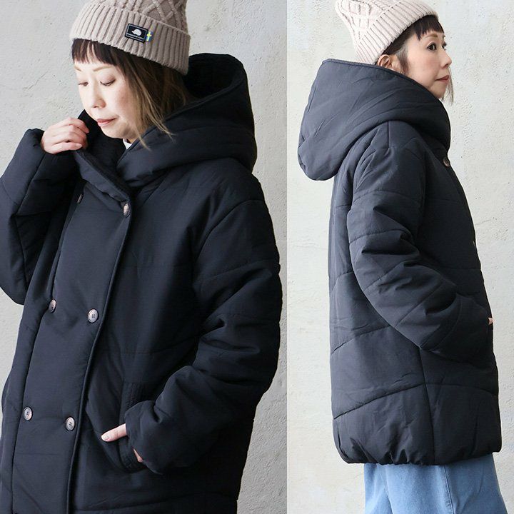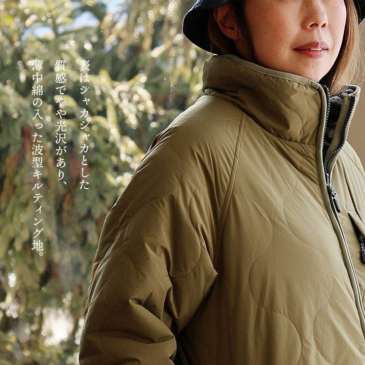 他の画像を見る チグハグが面白くて、暖かくて、そのうえひっくり返しても楽しめちゃう。 コート ロングコート ミリタリー レディース ロング丈 リバーシブル スタンドネック フード付き ボア 中綿 キルト 異素材切り替え 暖かい お尻隠れる 体型カバー 大きいサイズ カジュアル 秋 冬 パティ GENTIL ジャンティ 2~3日でお届け 販売価格 ¥ 16,500 税込 カートに入れる お気に入りに登録する