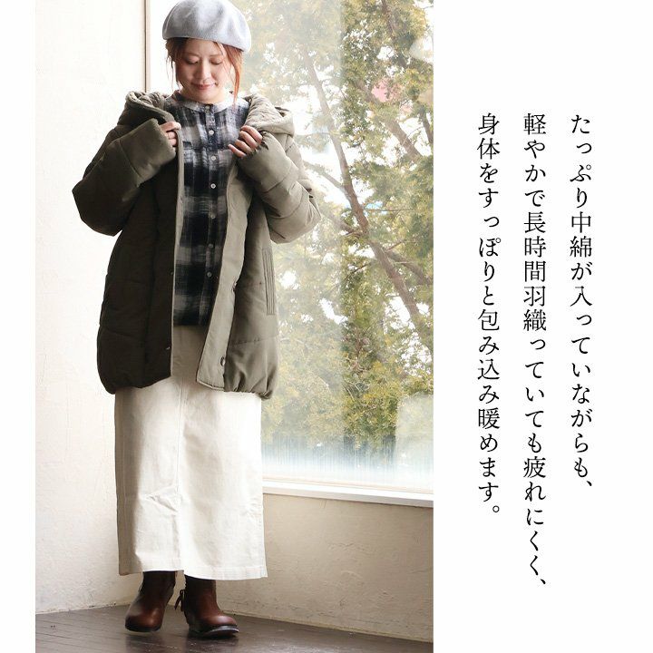 他の画像を見る 着膨れせず、暖かな頼りになる「疑似ダウン」。 コート ロング丈 レディース スタンドネック フード付き 袖リブ 高機能中綿 暖かい ゆったり 大きいサイズ 体型カバー カジュアル 秋 冬 パティ 2~3日でお届け 販売価格 ¥ 21,780 税込 カートに入れる お気に入りに登録する