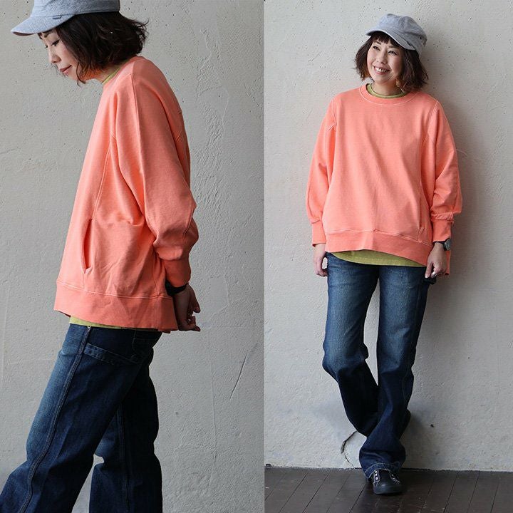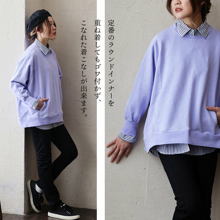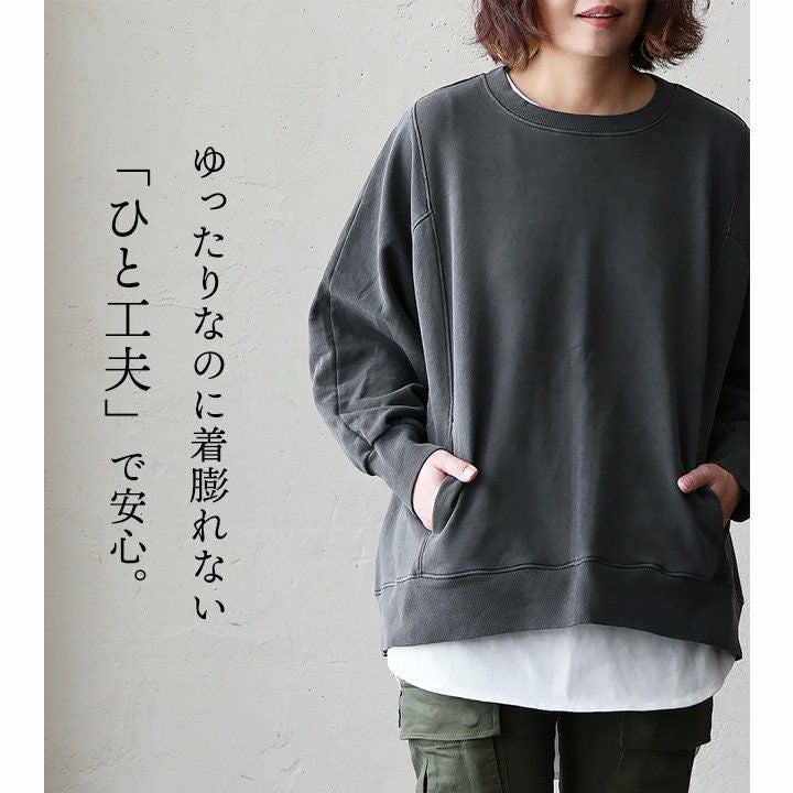 他の画像を見る ゆったりなのに着膨れない「ひと工夫」で安心。 トレーナー スウェット 長袖 レディース クルーネック 着痩せ コットン100% 綿 ミニ裏毛 ピグメント 褪せ色 ポケット付き ゆったり 体型カバー 大きいサイズ 重ね着 カジュアル メンズライク PATY パティ 2~3日でお届け 販売価格 ¥ 5,390 税込 カートに入れる お気に入りに登録する