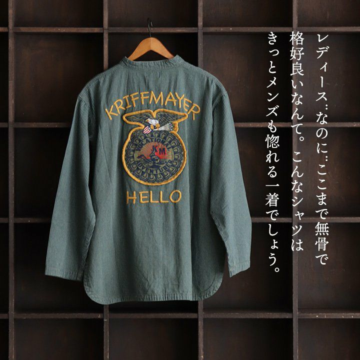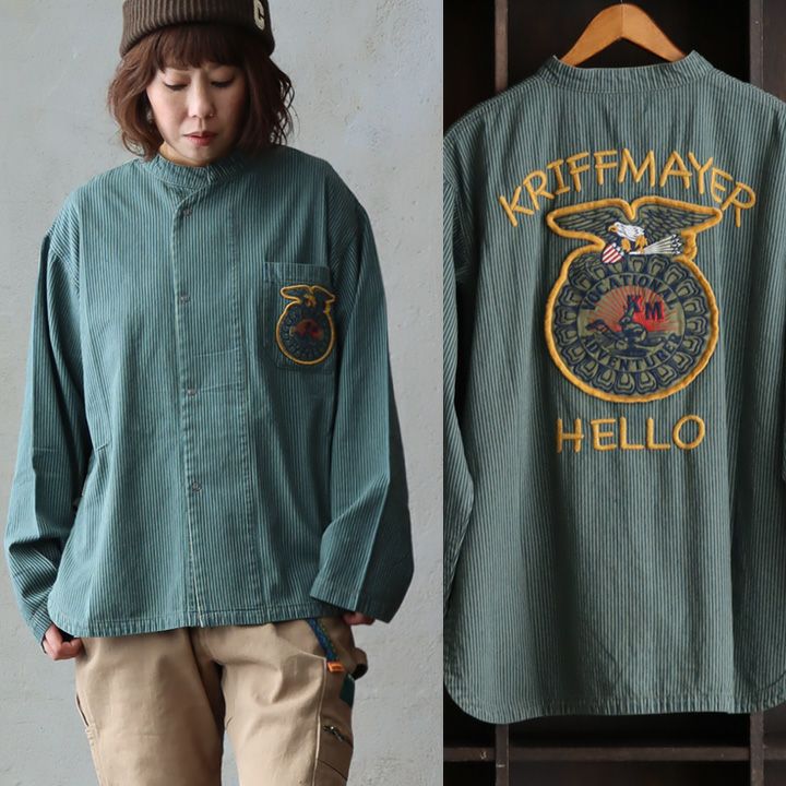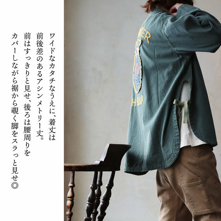他の画像を見る リラックスできるように仕上げた名品を「今」らしく。 KRIFF MAYER クリフメイヤー シャツジャケット 長袖 レディース スタンドネック 変則 デザイン リング ドットボタン ヒッコリー 製品染め 綿100 コットン 薄手 軽い ゆったり お尻隠れる 体型カバー カジュアル ヴィンテージ アメカジ メンズライク パティ 2~3日でお届け 販売価格 ¥ 14,080 税込 カートに入れる お気に入りに登録する