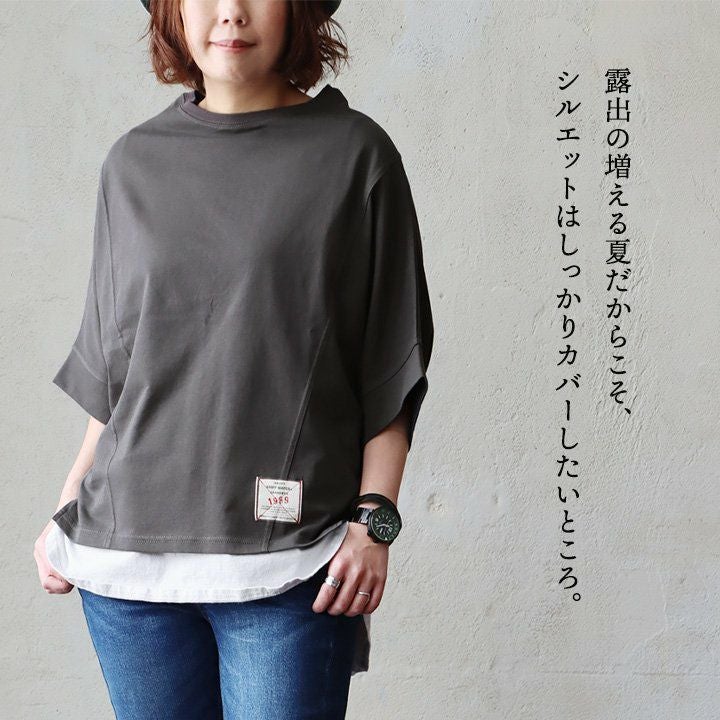 他の画像を見る 着痩せ狙いに見せない、独特な「色合い」「カタチ」。 【メール便50】 Tシャツ 5分袖 ドルマン レディース ボートネック 着痩せ すっきり 配色 コットン ポリエステル スラブ 伸縮性 薄手 軽い 涼しい 体型カバー 大きいサイズ ゆったり カジュアル 夏 パティ GENTIL ジャンティ 2~3日でお届け 販売価格 ¥ 4,290 税込 カートに入れる お気に入りに登録する