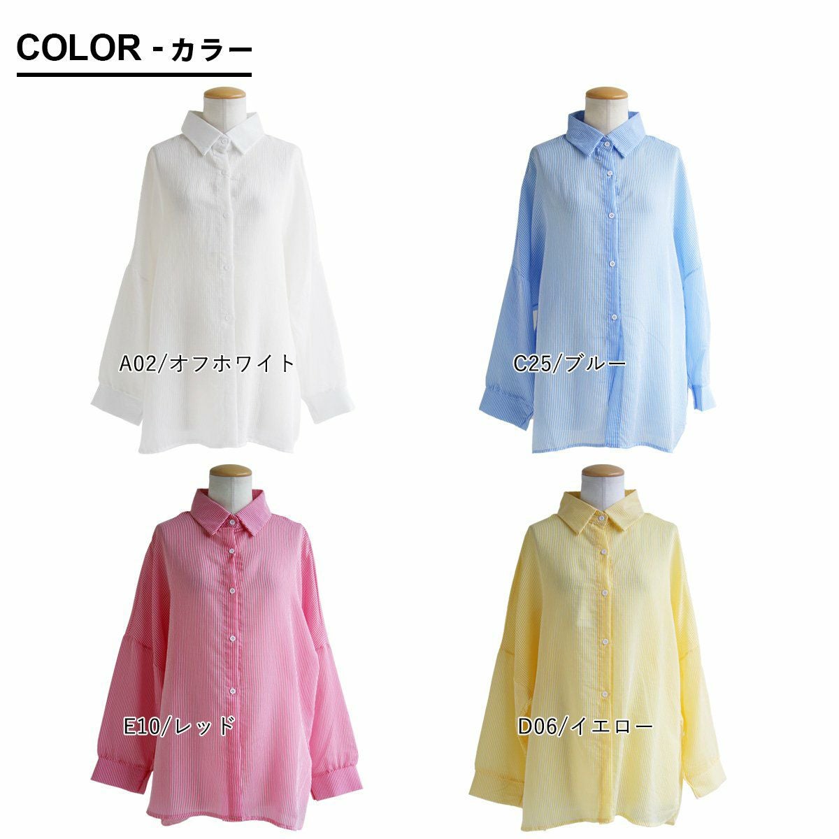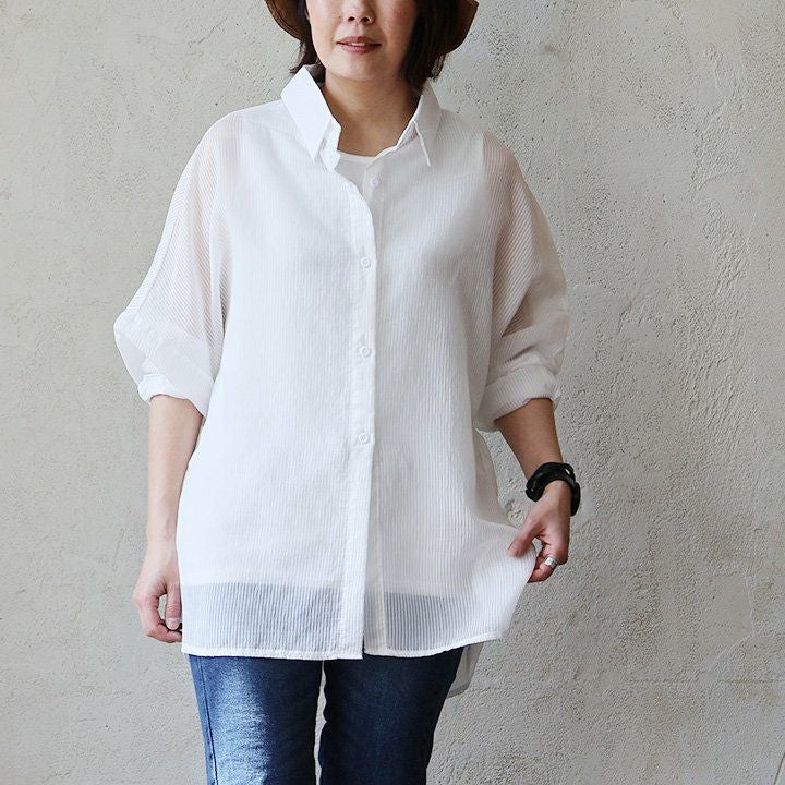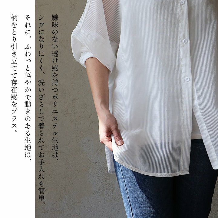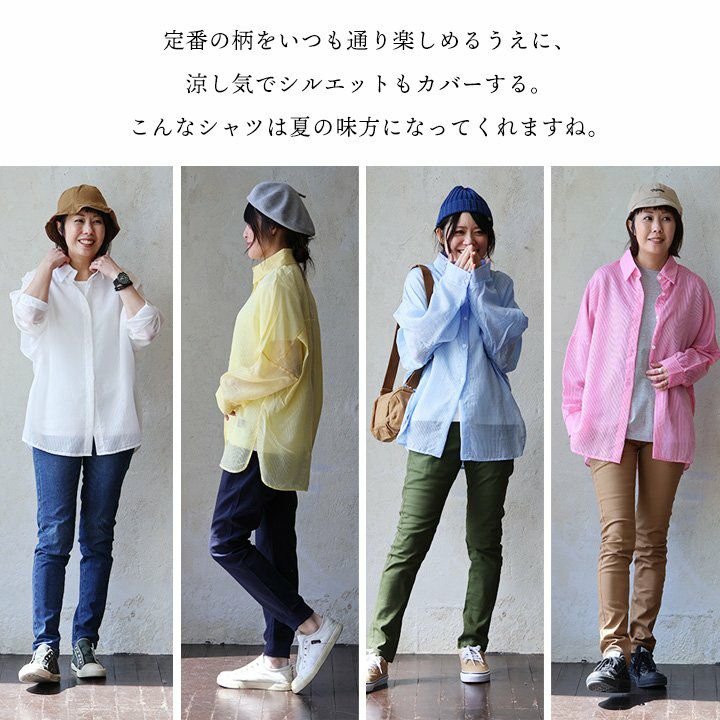 他の画像を見る 暑い夏の味方をする、涼しさとカバー力。 【メール便50】 シャツ 長袖 レディース ストライプ 総柄 ポリエステル 薄手 シアー 透け感 涼しい 通気性 軽い ゆったり 大きいサイズ 体型カバー カジュアル 夏 パティ GENTIL ジャンティ 2~3日でお届け 販売価格 ¥ 5,390 税込 カートに入れる お気に入りに登録する