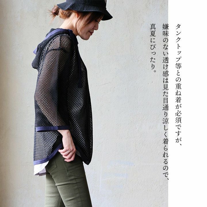 他の画像を見る 涼しく、ゆるっと着られる「真夏のパーカー」。 パーカー 長袖 レディース メッシュ シアー 透け感 ロゴ ポリエステル コットン 重ね着 軽い 薄手 涼しい 配色切り替え ゆったり 大きいサイズ 体型カバー カジュアル 夏 パティ GENTIL ジャンティ 2~3日でお届け 販売価格 ¥ 5,390 税込 カートに入れる お気に入りに登録する