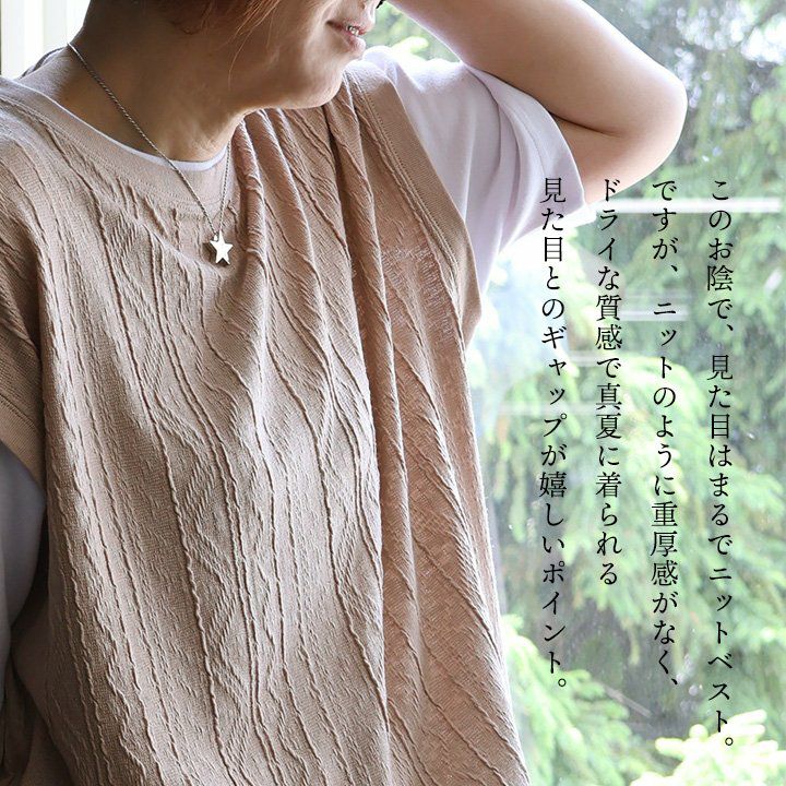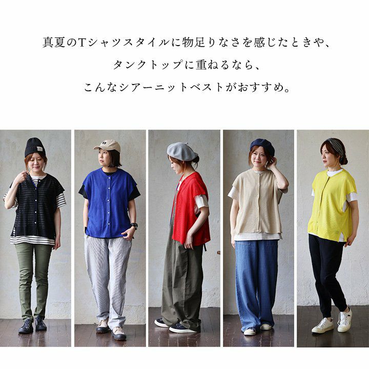他の画像を見る 真夏の重ね着が「涼しく」見違える。 【メール便50】 ベスト レディース クルーネック シアーニット 重ね着 無地 レーヨン ナイロン 薄手 涼しい 軽い ゆったり 大きいサイズ 体型カバー カジュアル 夏 パティ GENTIL ジャンティ 2~3日でお届け 販売価格 ¥ 5,390 税込 カートに入れる お気に入りに登録する