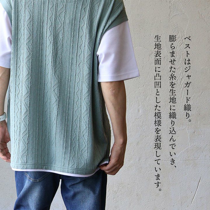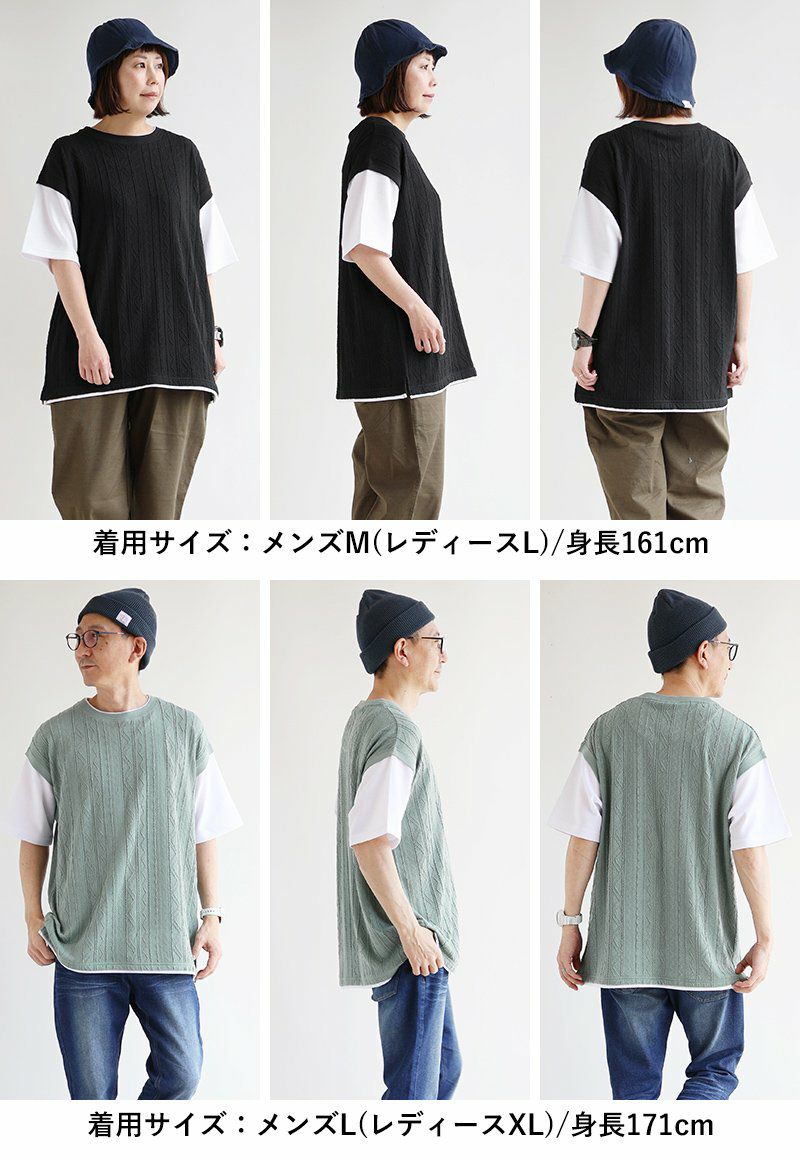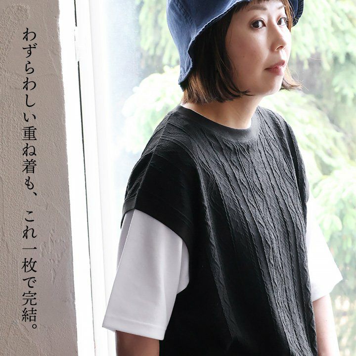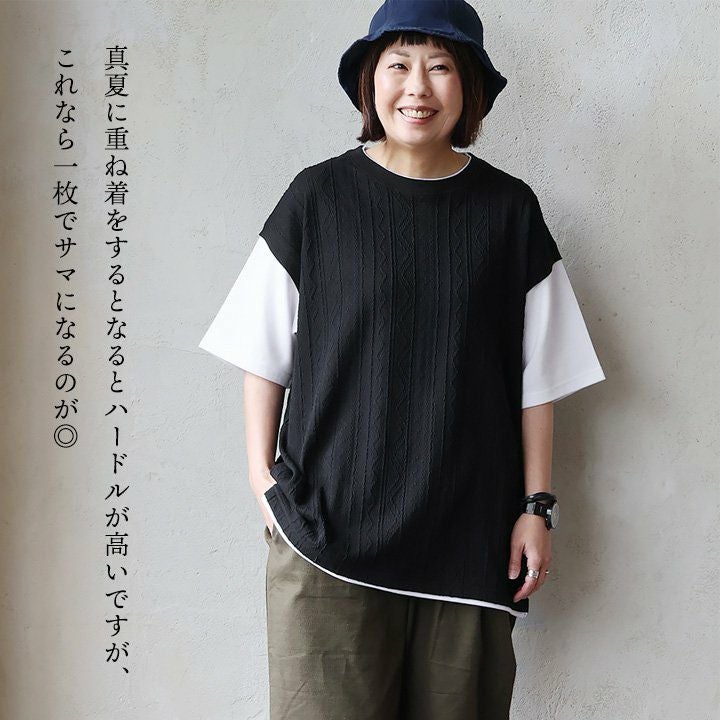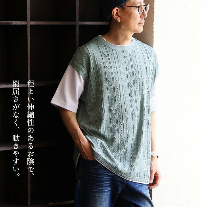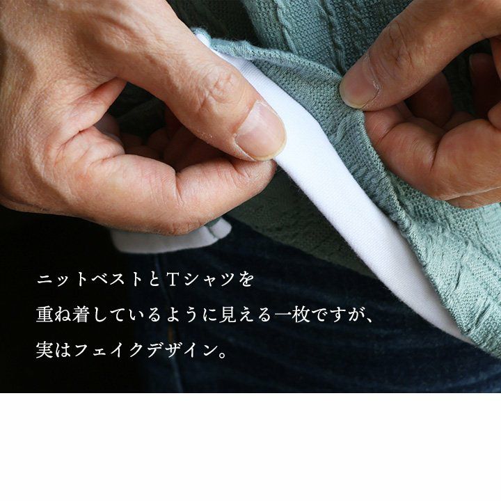 他の画像を見る わずらわしい重ね着も、これ一枚で完結。 【メール便50】 Tシャツ 半袖 ベスト メンズ レディース 重ね着風 フェイク レイヤード お洒落 ニットベスト ジャガード 伸縮性 接触冷感 涼しい ひんやり 涼しい カジュアル 夏 パティ 2~3日でお届け 販売価格 ¥ 4,290 税込 カートに入れる お気に入りに登録する