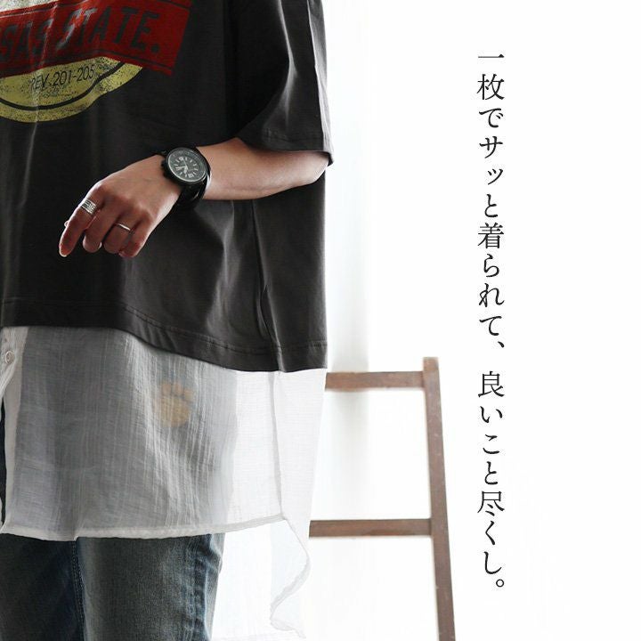 他の画像を見る 一枚でサッと着られて、良いこと尽くし。 【メール便50】 Tシャツ 半袖 レディース クルーネック ロゴプリント レイヤード 重ね着 異素材切り替え 綿100 コットン 薄手 体型カバー お尻隠れる 着痩せ すっきり カジュアル 秋 パティ GENTIL ジャンティ 2~3日でお届け 販売価格 ¥ 5,390 税込 カートに入れる お気に入りに登録する