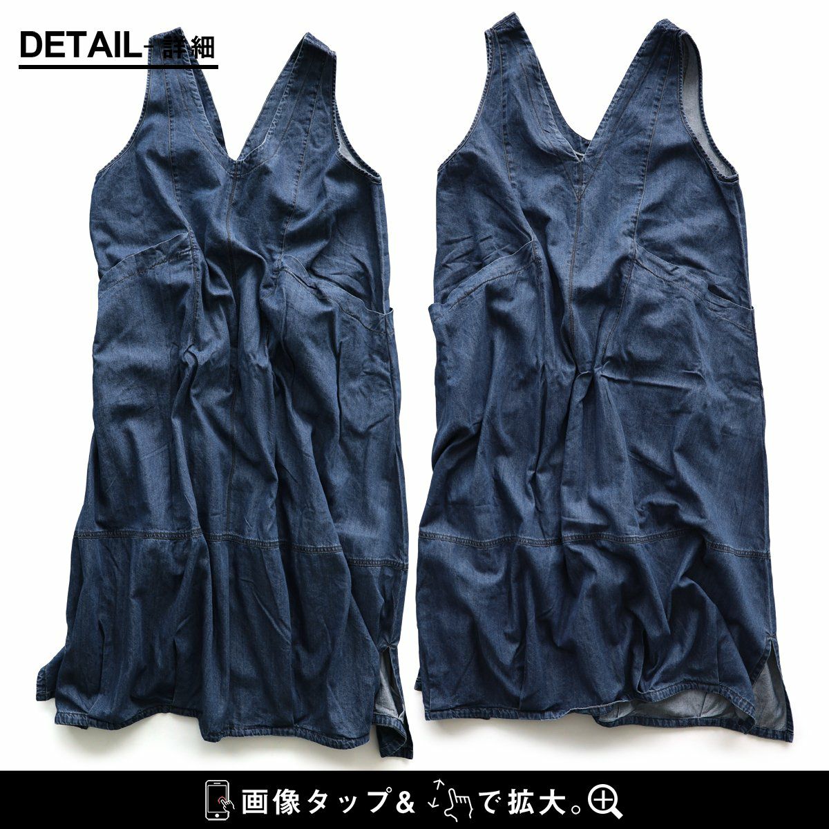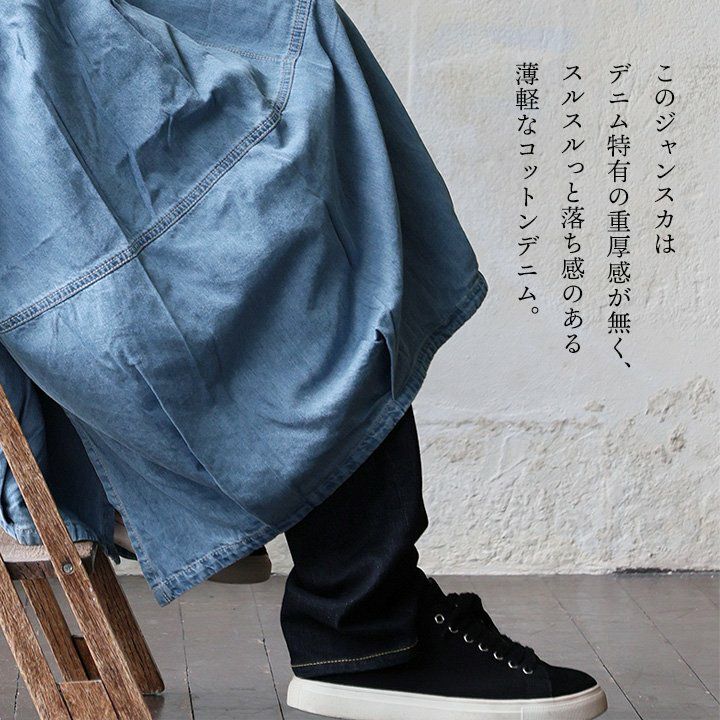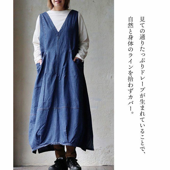 他の画像を見る ラインを拾わず、目線は奪う。 ジャンパースカート ジャンスカ レディース ノースリーブ Vネック コットン デニム 薄手 軽い 大きいサイズ 体型カバー 着痩せ すっきり 重ね着 カジュアル 秋 パティ 2~3日でお届け POINT10倍 販売価格 ¥ 10,780 税込 詳細を見る お気に入りに登録する