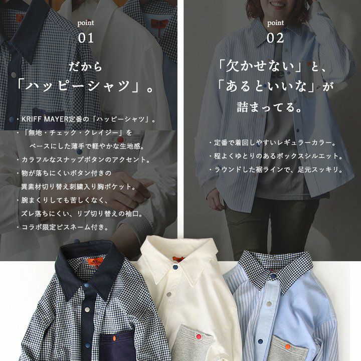 他の画像を見る 「欠かせない」と、「あるといいな」が詰まってる。 KRIFF MAYER クリフメイヤー シャツ 長袖 袖リブ クレイジー マルチ チェックシャツ レギュラーカラー メンズ レディース 異素材切替 カラフル スナップボタン ゆったり 大きい 薄手 ポケット 限定 コラボ パティ 2~3日でお届け 販売価格 ¥ 7,590 税込 カートに入れる お気に入りに登録する
