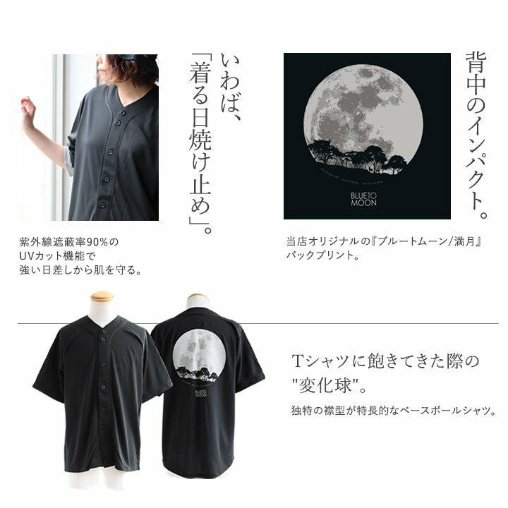 他の画像を見る ブルートムーン/満月 涼しい ベースボールシャツ 半袖 5分袖 メンズ レディース 夏 ドライ UVカット 吸汗 伸縮性 軽い 満月 プリント すっきり 着痩せ 落ち感 大人 カジュアル パティ BLUETO ブルート 2~3日でお届け 販売価格 ¥ 5,390 税込 カートに入れる お気に入りに登録する