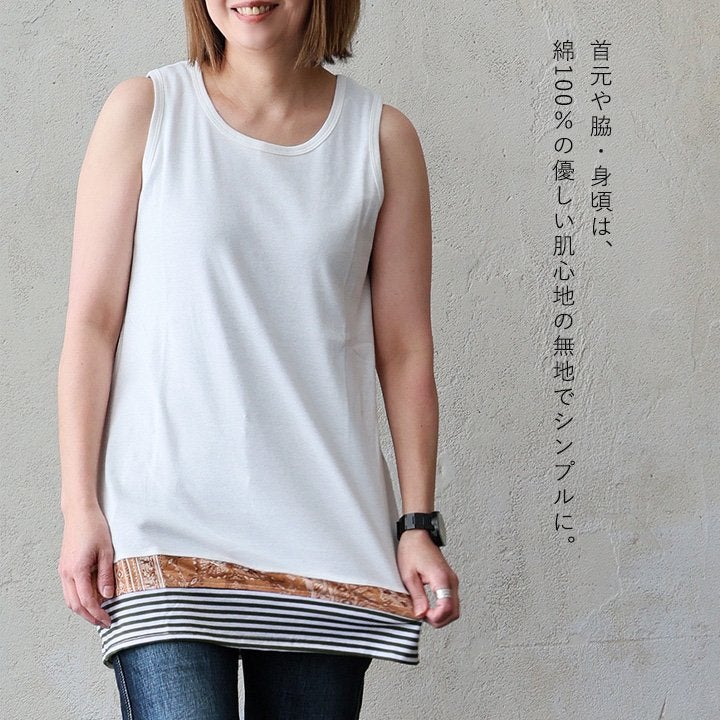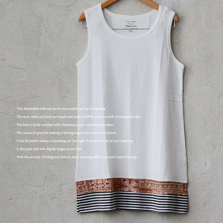 他の画像を見る いつものタンク「コレ」に替えるだけで、重ね着上手に。 【メール便50】 タンクトップ ロング レディース 重ね着 胸元 お尻 カバー 綿100% コットン ロング丈 切り替え 柄 ワイド ストラップ 吸水 薄手 軽い 大人 すっきり 安心 胸が ブラ紐 隠し 見えない パティ 2~3日でお届け 販売価格 ¥ 2,750 税込 カートに入れる お気に入りに登録する