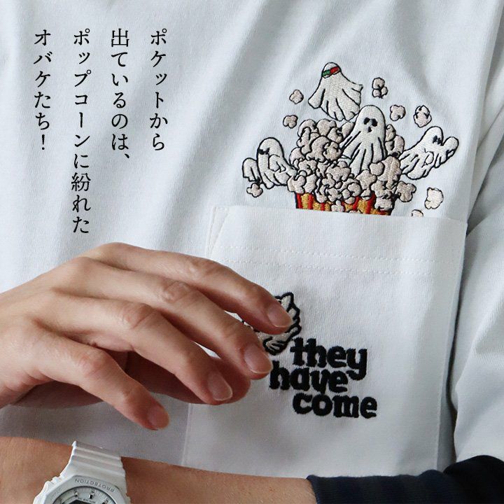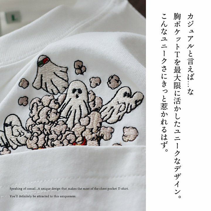 他の画像を見る ポケットから飛び出す「オバケポップコーン」!? Tシャツ 半袖 メンズ レディース クルーネック 胸ポケット オバケ ポップコーン 刺繍 綿100 コットン 天竺 オープンエンド ゆったり 大きいサイズ カジュアル パティ 2~3日でお届け 販売価格 ¥ 4,950 税込 カートに入れる お気に入りに登録する