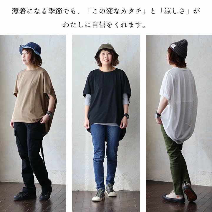 他の画像を見る この「変なカタチ」と「涼しさ」がわたしに自信をくれる。 Tシャツ 半袖 レディース クルーネック コクーン お尻隠れる ドライタッチ コットン ポリエステル 伸縮性 薄手 涼しい ゆったり 大きいサイズ 体型カバー 着痩せ カジュアル 夏 パティ 2~3日でお届け 販売価格 ¥ 4,290 税込 カートに入れる お気に入りに登録する