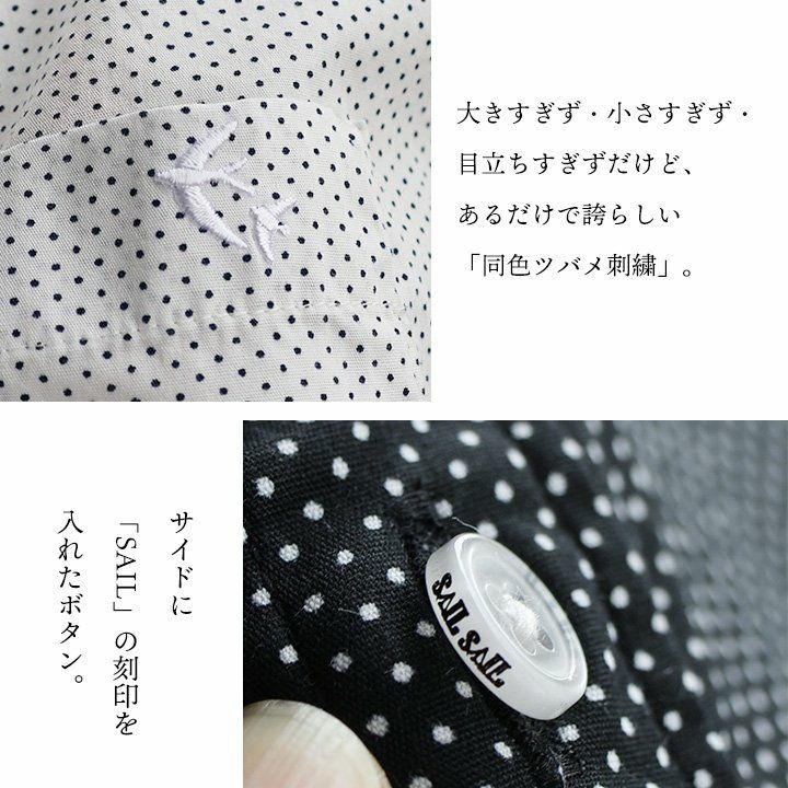 他の画像を見る 着痩せの「ゆとり」と「アイロン要らず」の日本製ドットシャツ。 シャツ レディース メンズ 半袖 丸襟 ピンドット ドット 日本製 コットン 綿100% おしゃれ 配色 刺繍 刻印ボタン 夏 プルオーバー 風 アイロン不要 すっきり ボックスシルエット 着痩せ 半袖シャツ 仕事 オフィス カジュアル パティ SAIL セイル 2~3日でお届け 販売価格 ¥ 7,920 税込 カートに入れる お気に入りに登録する