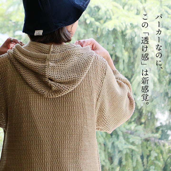 他の画像を見る パーカーなのに、この「透け感」は新感覚。 パーカー 長袖 レディース 重ね着 シアー メッシュニット アクリル 薄手 透け感 軽い 通気性 涼しい 大きいサイズ 体型カバー すっきり カジュアル 夏 パティ GENTIL ジャンティ 2~3日でお届け 販売価格 ¥ 6,490 税込 カートに入れる お気に入りに登録する