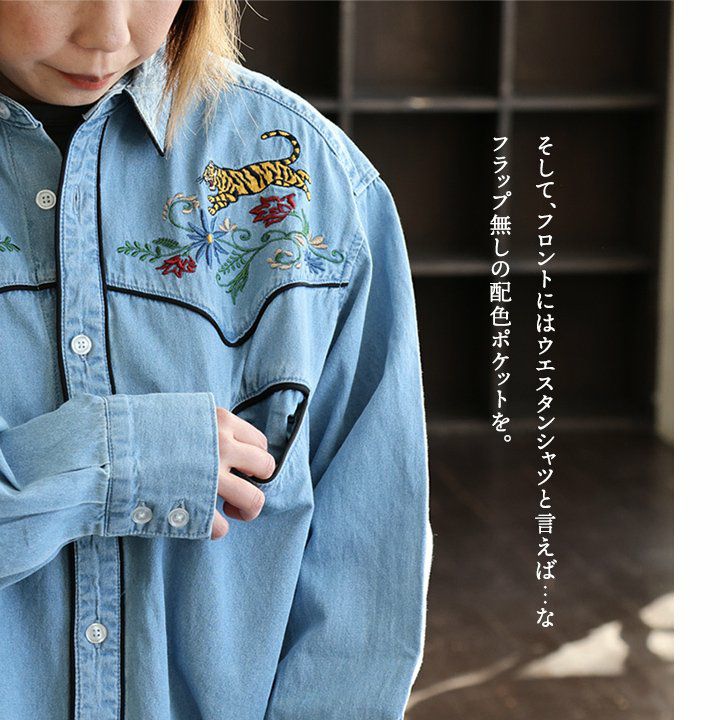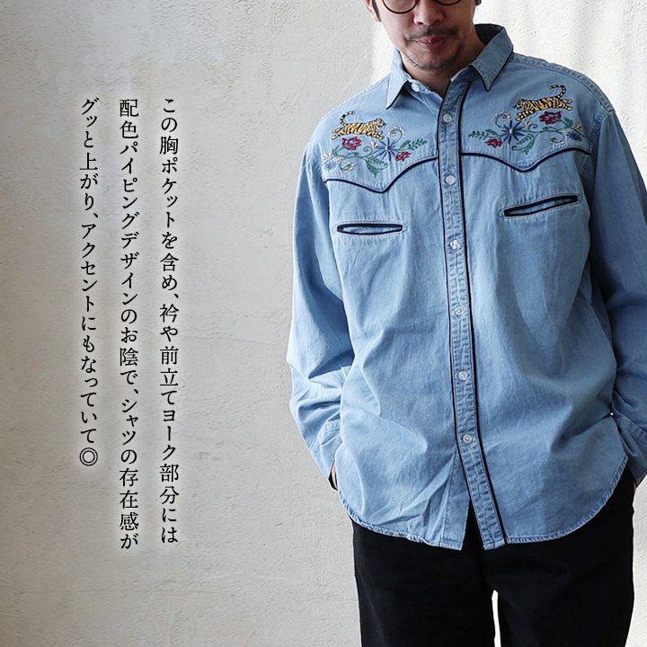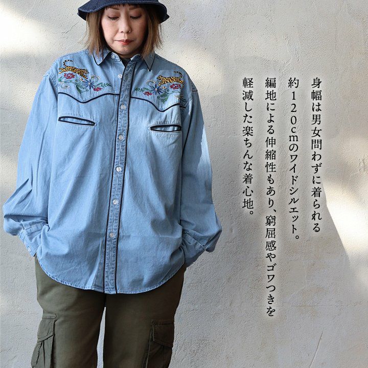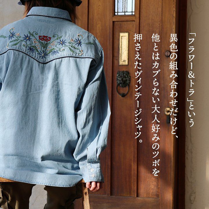 他の画像を見る 独特な異色の組み合わせが、大人好みなヴィンテージ感。 シャツ ウエスタンシャツ デニムシャツ メンズ レディース 綿100 コットン 薄手 軽い フラワー 花 トラ アニマル 刺繍 ゆったり 大きいサイズ 体型カバー カジュアル ヴィンテージ パティ 2~3日でお届け 販売価格 ¥ 8,690 税込 カートに入れる お気に入りに登録する