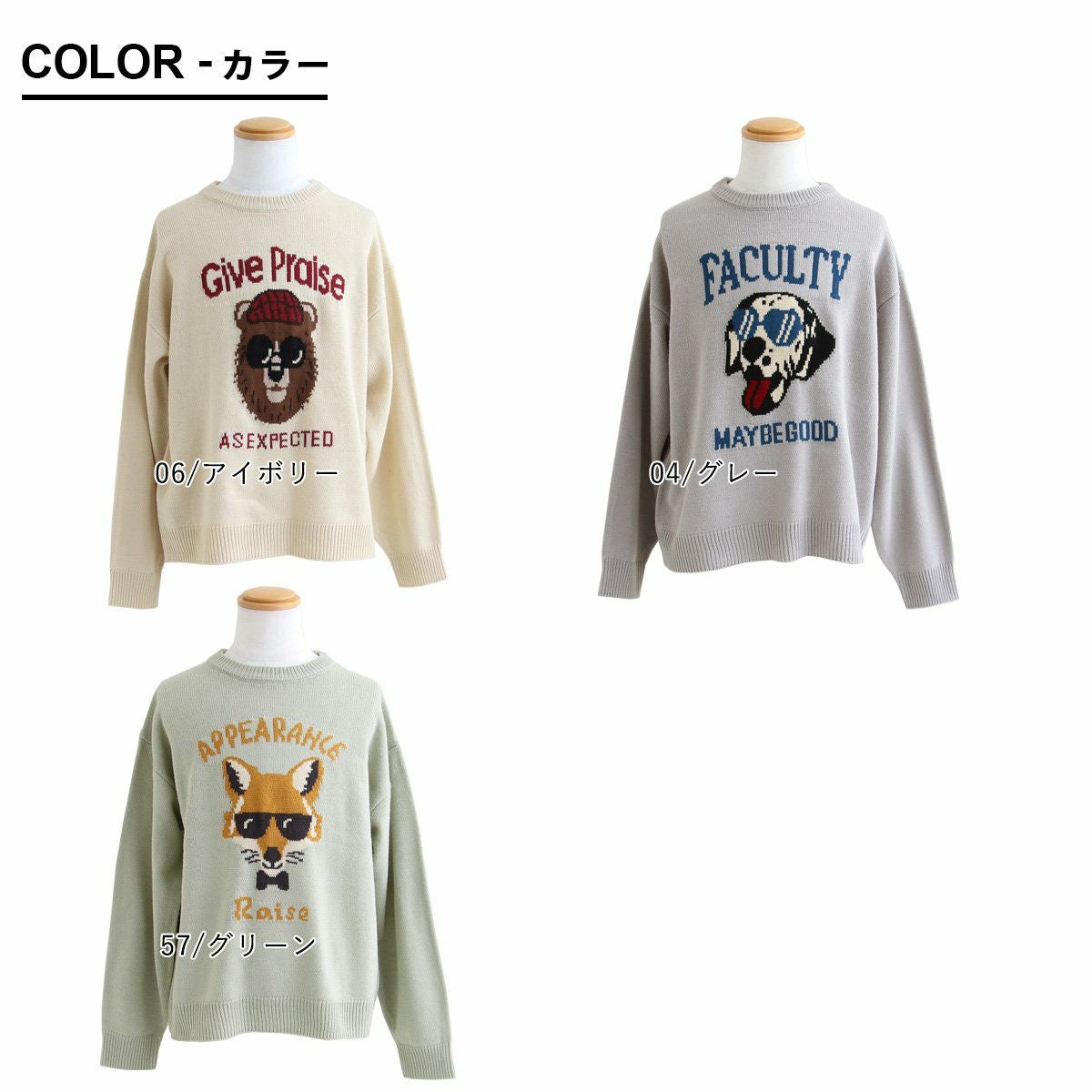 他の画像を見る みんな違って、どれも良いっ! ニット 長袖 メンズ レディース クルーネック ジャガード アクリル100 アニマル 動物 ロゴ 配色 伸縮性 ゆったり 大きいサイズ カジュアル 秋 冬 動物 アニマル ZOO パティ 2~3日でお届け 販売価格 ¥ 6,490 税込 カートに入れる お気に入りに登録する