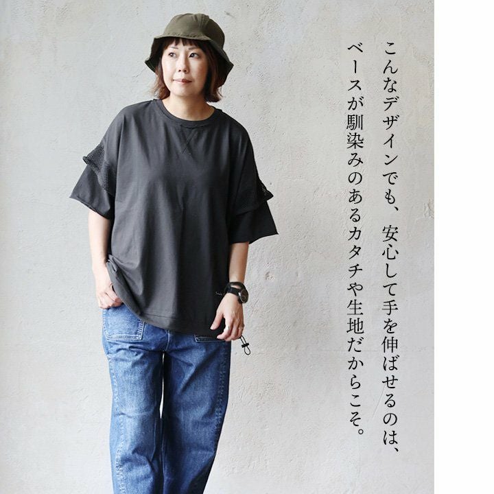 他の画像を見る シンプルがいいけど、「普通」はいや。 【メール便50】 Tシャツ 半袖 レディース クルーネック 袖メッシュ シアー 切り替え ロゴ刺繍 ワンポイント 綿100 コットン 天竺 伸縮性 通気性 大きいサイズ 体型カバー 着痩せ すっきり カジュアル 夏 パティ GENTIL ジャンティ 2~3日でお届け 販売価格 ¥ 5,390 税込 カートに入れる お気に入りに登録する