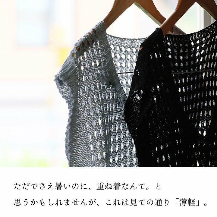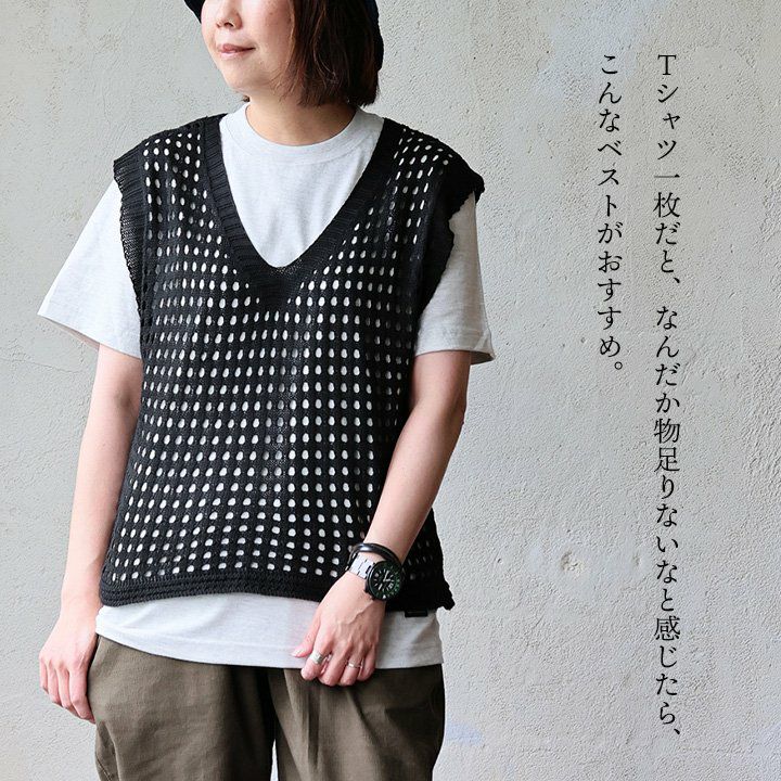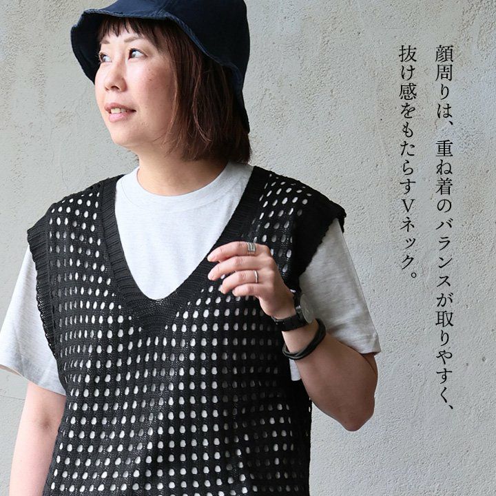 他の画像を見る 引き立てる「透け感」。 【メール便50】 ベスト レディース Vネック ニットベスト 透け感 シアー 軽い 涼しい 通気性 薄手 重ね着 すっきり カジュアル 夏 パティ GENTIL ジャンティ 2~3日でお届け 販売価格 ¥ 4,290 税込 カートに入れる お気に入りに登録する