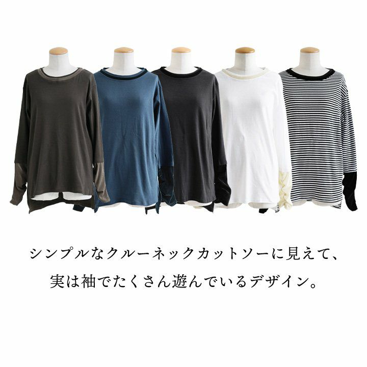 他の画像を見る いつもとは「ちょっと違う」配色アソビ。 カットソー 長袖 レディース クルーネック 重ね着 袖配色 ベロア 異素材切り替え 綿100 コットン 天竺 伸縮性 動きやすい カジュアル 秋 冬 春 パティ 2~3日でお届け 販売価格 ¥ 3,190 税込 カートに入れる お気に入りに登録する