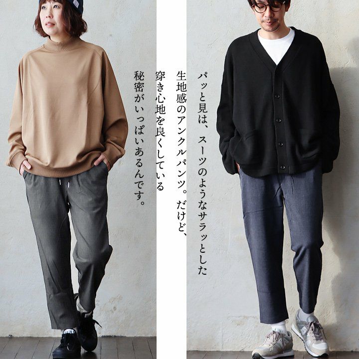 他の画像を見る 穿き心地は楽ちん、キレイめスラックス風アンクルパンツ。 パンツ アンクル丈 テーパード ストレート メンズ レディース 無地 薄手 滑らか しっかり生地 伸縮性 ストレッチ ウエストゴム ゆったり 体型カバー カジュアル ユニセックス パティ 2~3日でお届け 販売価格 ¥ 6,490 税込 詳細を見る お気に入りに登録する