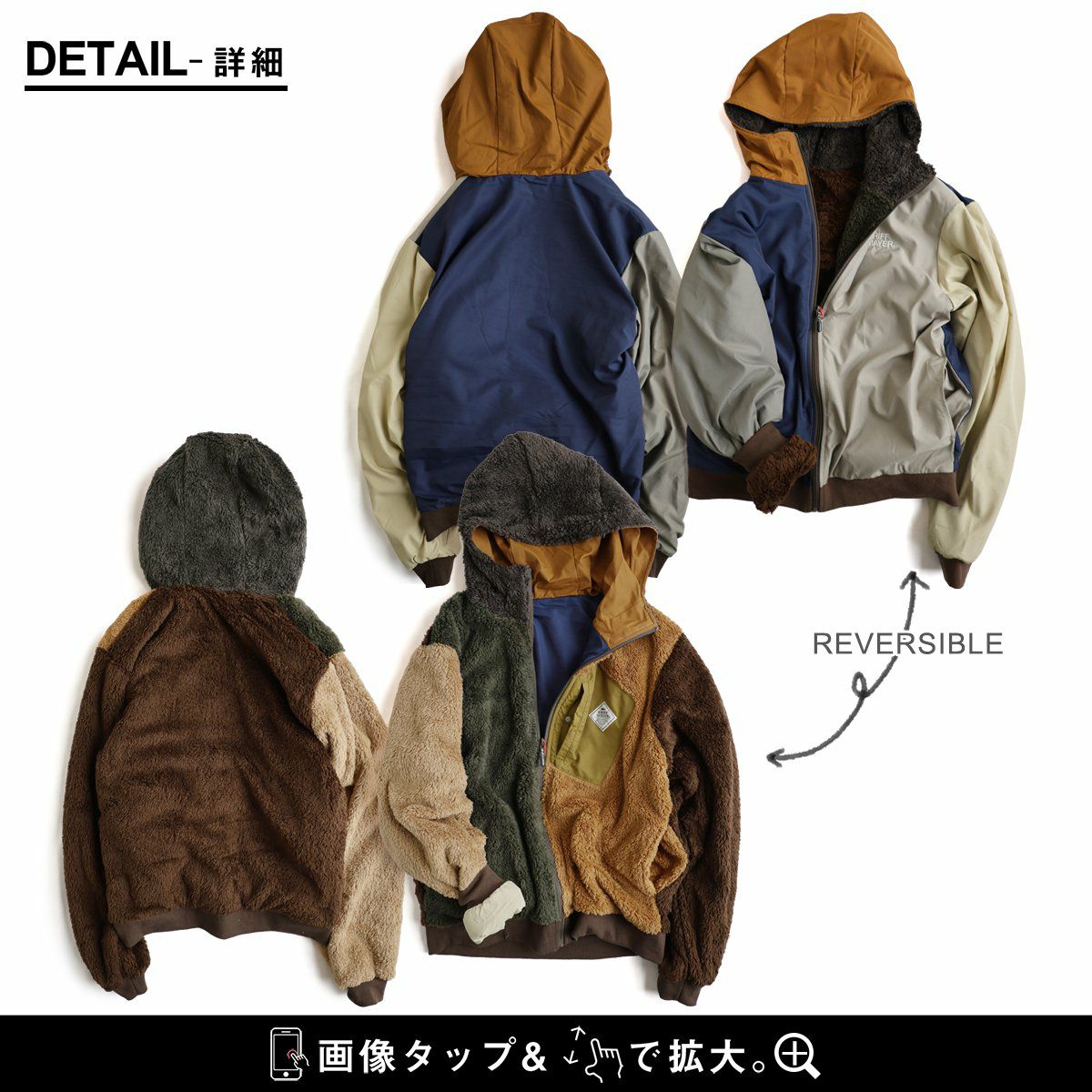 他の画像を見る 飽きたら、ひっくり返せばいいんです。 KRIFF MAYER クリフメイヤー アウター ジャケット ひっくりジャケット ハイネック フード パーカー リバーシブル 無地 ボア ポリエステル 防寒 メンズ レディース メンズライク カジュアル アウトドア 冬 冬服 大き目 パティ 2~3日でお届け 販売価格 ¥ 10,780 税込 カートに入れる お気に入りに登録する