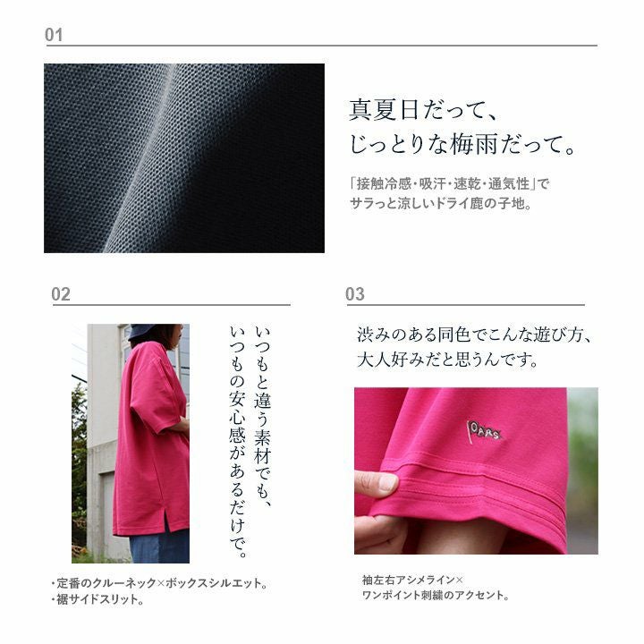 他の画像を見る 30度以上の真夏日だって、じっとりな梅雨だって。 【メール便50】 涼しい tシャツ メンズ レディース 五分袖 夏 鹿の子 冷感加工 吸汗 速乾 ビッグシルエット 着痩せ ワイド 二の腕 お尻 体系 カバー 刺繍 袖ライン 生地 大人 カジュアル パティ OAR’S オールズ 2~3日でお届け 販売価格 ¥ 4,950 税込 カートに入れる お気に入りに登録する