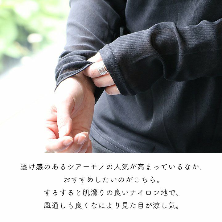 他の画像を見る 涼しく、動きやすく、品良く「魅せる」、夏の味方。 カットソー 長袖 レディース クルーネック シアー 透け感 涼しい 紫外線 冷房 日焼け 対策 薄手 重ね着 伸縮性 ストレッチ 動きやすい すっきり 夏 夏服 カジュアル パティ 2~3日でお届け 販売価格 ¥ 3,850 税込 カートに入れる お気に入りに登録する