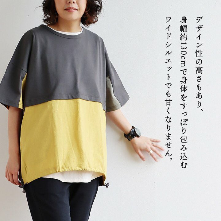 他の画像を見る ちょっと変わった見た目には、「嬉しい理由」がいっぱい。 着痩せ すっきり tシャツ ワイド 五分袖 5分袖 夏 レディース 無地 ニットリブ 異素材 切り替え ピグメント 綿100 コットン 二の腕 お尻 体型カバー カジュアル パティ GENTIL ジャンティ 2~3日でお届け 販売価格 ¥ 5,390 税込 カートに入れる お気に入りに登録する