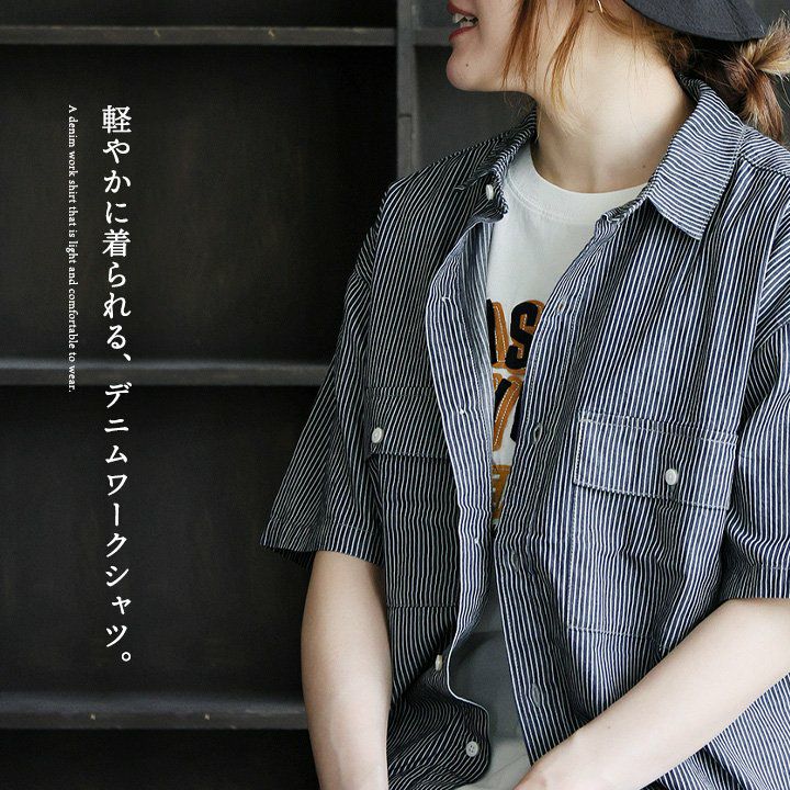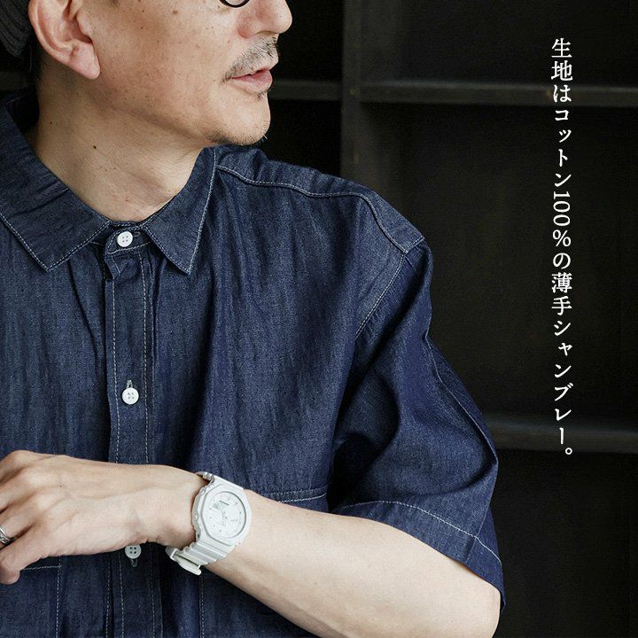 他の画像を見る 軽やかに着られる、デニムワークシャツ。 gym master ジムマスター シャツ デニムシャツ ワークシャツ 半袖 メンズ レディース 綿100 コットン シャンブレー 薄手 軽い 通気性 伸縮性 ゆったり 大きいサイズ カジュアル 夏 パティ 2~3日でお届け 販売価格 ¥ 7,590 税込 カートに入れる お気に入りに登録する