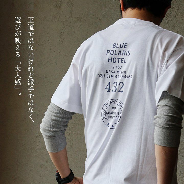 他の画像を見る シンプルだけど、ちょっとズレたカギ位置の遊びが好き。 【メール便50】 tシャツ 半袖 メンズ レディース しっかり 丈夫 コットン 綿100% 『BLUE POLARIS HOTEL 前後 国内プリント』 ユニセックス 軽い すっきり ボックスシルエット 夏 ティーシャツ カジュアル パティ SAIL セイル 2~3日でお届け 販売価格 ¥ 4,290 税込 詳細を見る お気に入りに登録する
