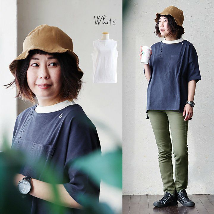 他の画像を見る あの「ゆるトップス」もこれで安心。 【メール便50】 重ね着 タンクトップ レディース 首隠れる 締め付けない 胸が見えない 米綿 コットン 綿100 接触冷感 伸びる 軽やか モックネック ワイド 胸元 ブラ紐 カバー UV パティ Souple スプル 2~3日でお届け POINT5倍 販売価格 ¥ 2,970 税込 詳細を見る お気に入りに登録する