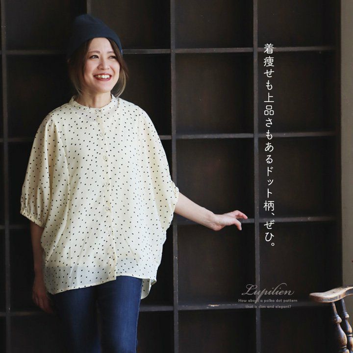 他の画像を見る 着痩せに、上品さもあるドット柄ならどうでしょう? ブラウス 5分袖 レディース バンドカラー ドット柄 総柄 薄手 涼しい ポリエステル100% 夏 夏服 ゆったり 体型カバー 大きいサイズ 着痩せ カジュアル PATY パティ 2~3日でお届け 販売価格 ¥ 4,290 税込 在庫切れ カートに入れる お気に入りに登録する