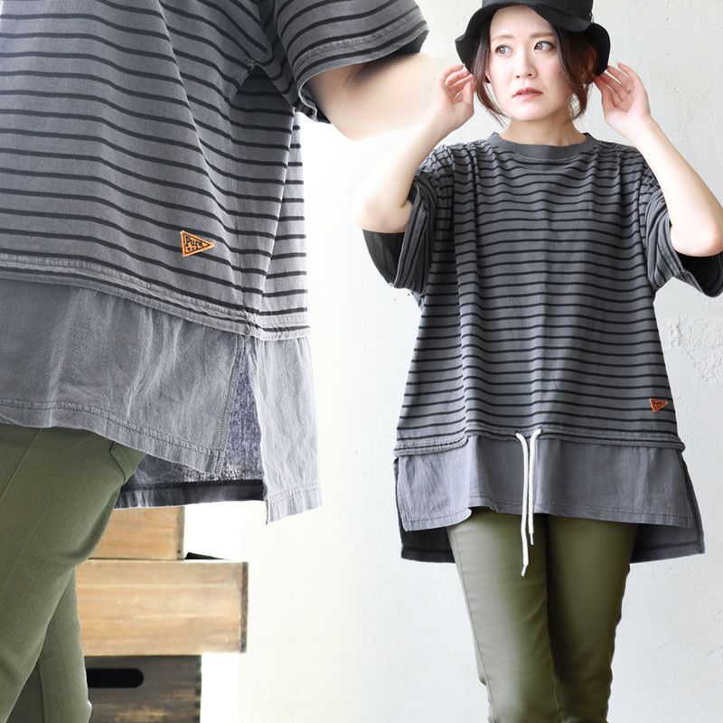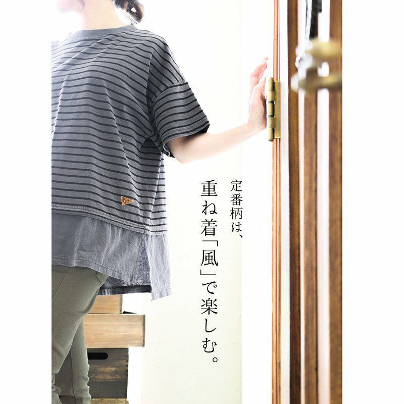 他の画像を見る 定番柄は、重ね着「風」で楽しむ。 Tシャツ 半袖 レディース ボーダー 無地 異素材切り替え 綿100% 布帛地 通気性 ドライ 薄手 しっかり生地 夏 夏服 大きいサイズ ゆったり 重ね着 カジュアル メンズライク PATY パティ GENTIL ジャンティ 2~3日でお届け 販売価格 ¥ 5,390 税込 在庫切れ カートに入れる お気に入りに登録する