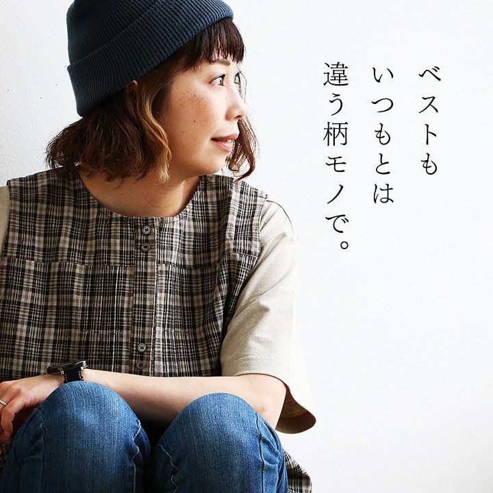 他の画像を見る ベストもいつもとは違う柄モノで。 ベスト ノースリーブ 袖なし 重ね着 クルーネック チェック柄 総柄 2WAY 重ね着 レイヤード 綿 麻 コットン リネン すっきり レディース メンズライク カジュアル PATY パティ Lupilien ルピリアン 2~3日でお届け 販売価格 ¥ 5,390 税込 在庫切れ カートに入れる お気に入りに登録する