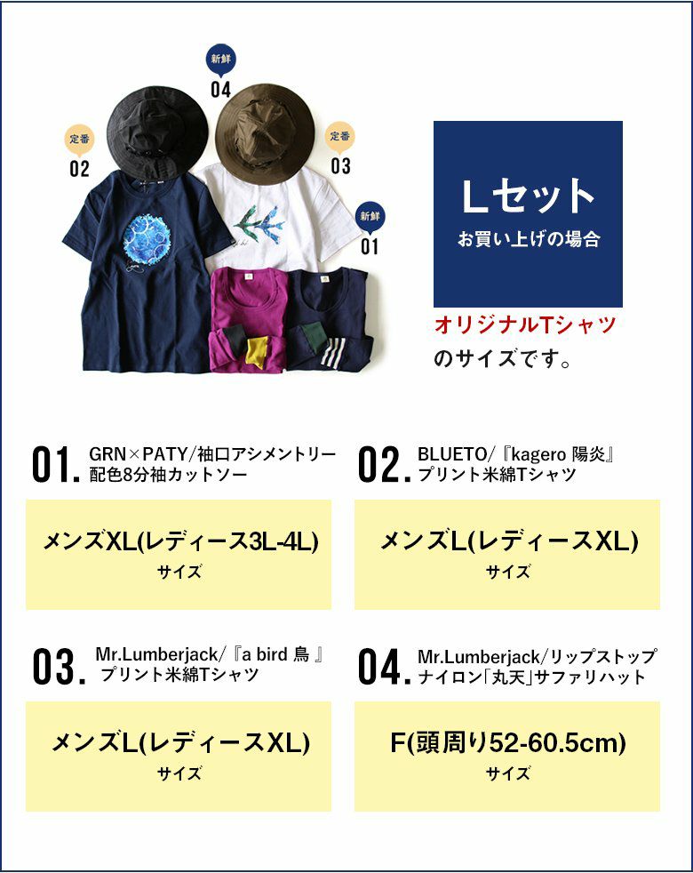 他の画像を見る 『定番』に差を付けるなら、カブらないオリジナルが◎ コーディネート セット コーデセット 福袋 『ユニセックス カジュアル セット』 お試し 春 春服 夏 夏服 40代 50代 L XL 販売価格 ¥ 7,777 税込 在庫切れ カートに入れる お気に入りに登録する