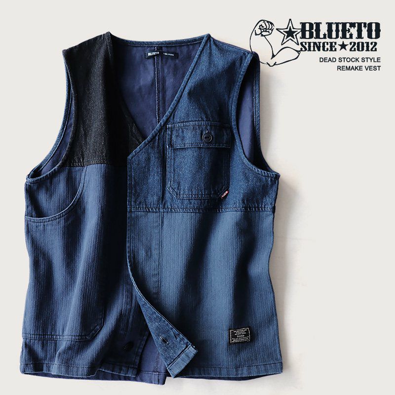 他の画像を見る この古いワーク感の「渋み」を、長く変わらず楽しめるのがいい。 ベスト 前開き Vネック 比翼 ボタンアップ 切り替え 『デットストック風 リメイク パッチワーク 切替』 デニム ツイル ヘリンボーン メンズ レディース 女性用 トップス 重ね着 カジュアル 着回し BLUETO [ブルート] 販売価格 ¥ 6,490 税込 在庫切れ 詳細を見る お気に入りに登録する