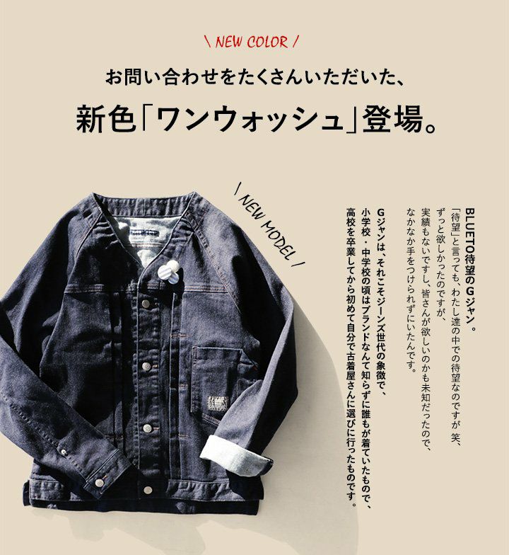 他の画像を見る 『常識破り』の伸縮性で崩れず、長持ち。動ける新Gジャン。 Gジャン ジャケット デニム ノーカラー 「ストレッチ 伸縮 繊維」 バッジ付き メンズ レディース アウター デニムジャケット ジージャン | カジュアル ユニセックス ブルゾンブルゾンジャケット BLUETO [ブルート] 2~3日でお届け 販売価格 ¥ 8,690 税込 在庫切れ カートに入れる お気に入りに登録する