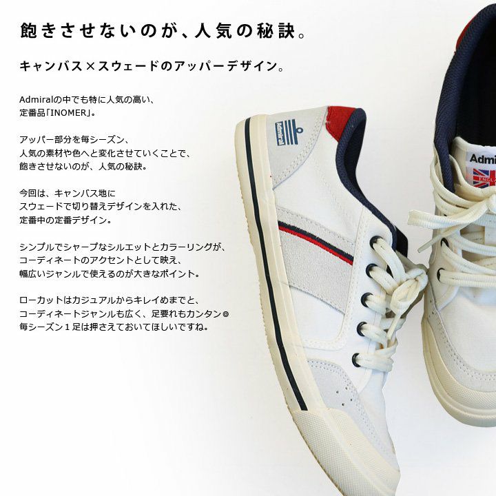 他の画像を見る デザイン性と快適さの両方を持った、変わらぬ「定番」。 ローカット スニーカー INOMER イノマー キャンバス×スウェード 異素材切り替え 柔らかクッション入り レディース アイボリー ネイビー レッド UK4 UK5 UK6|靴 くつ カジュアル シューズ 大人 レディースシューズ 40代 50代 Admiral [アドミラル] 2~3日でお届け 販売価格 ¥ 7,040 税込 在庫切れ 詳細を見る お気に入りに登録する