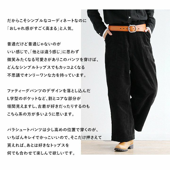他の画像を見る 普通だけど普通じゃないのが、「いい感じ」。 (セイル) SAIL パラシュートパンツ ボリュームシルエット ウエストゴム ダーツ入り コーデュロイ 綿100% 販売価格 ¥ 7,590 税込 在庫切れ 詳細を見る お気に入りに登録する