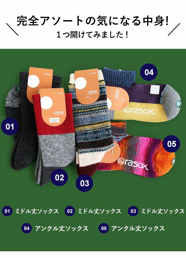他の画像を見る 【数量限定】2019福袋 UNISEX/完全アソート (ラソックス) rasox 福袋 数量限定 ブランド 2019 新年 お年玉 2019福袋 2019新春 2019年 お正月 賀正 販売価格 ¥ 4,400 税込 在庫切れ カートに入れる お気に入りに登録する