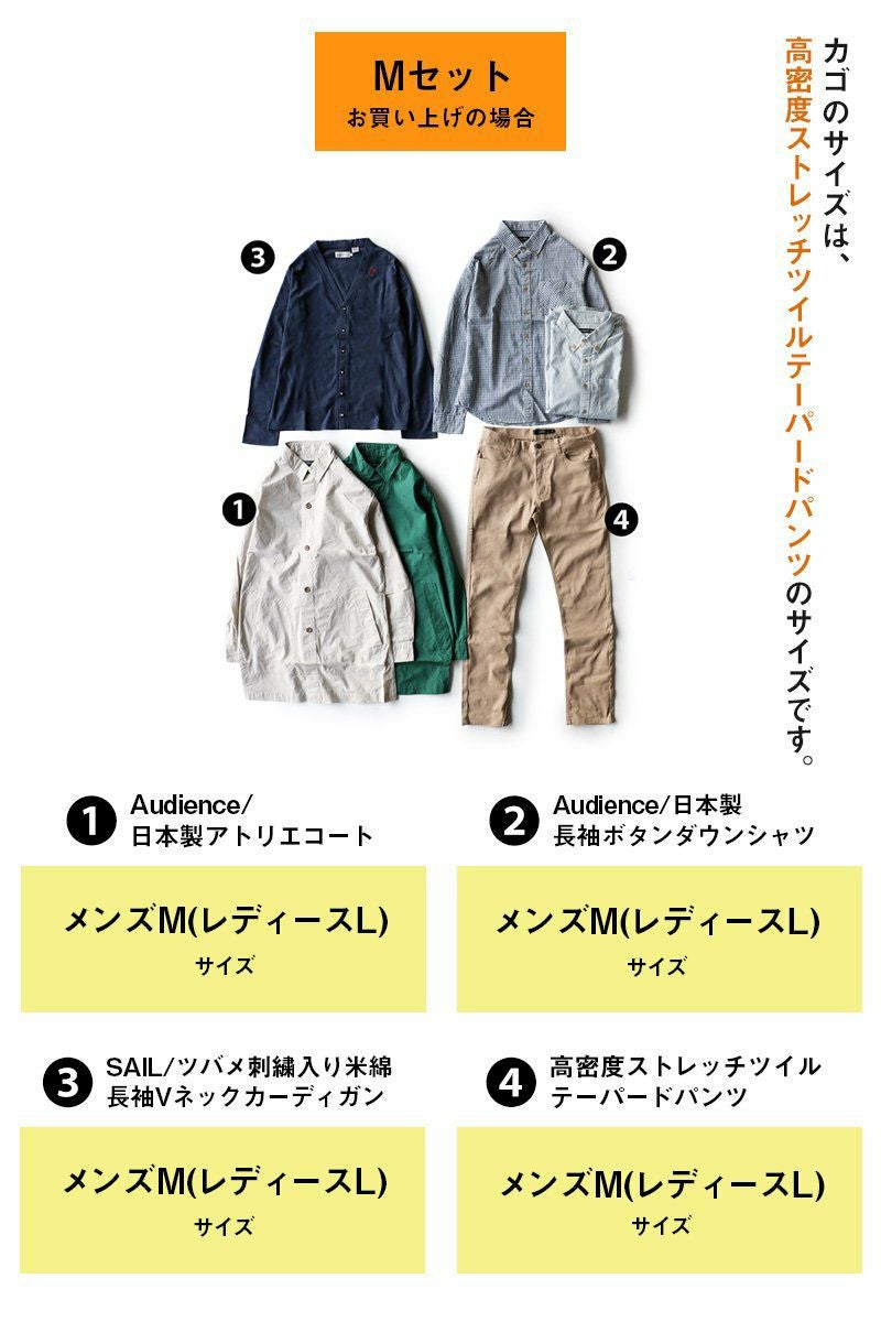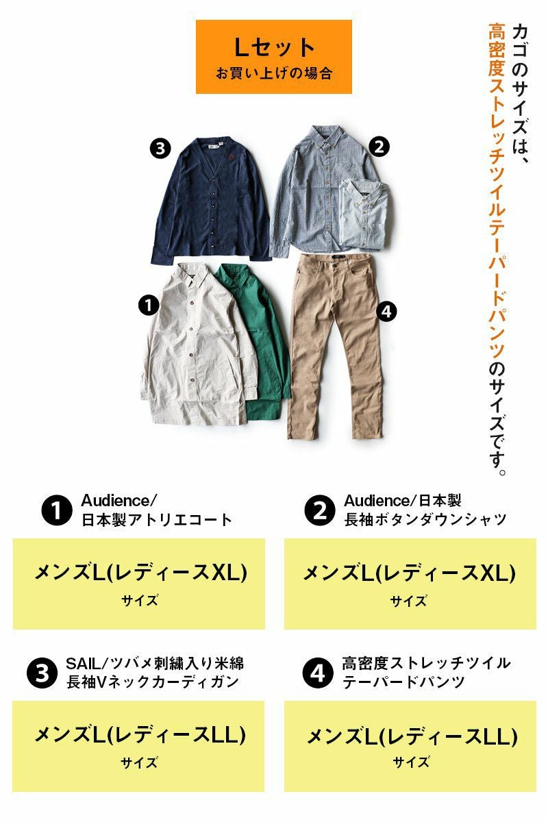 他の画像を見る コートが主役なコーディネートだって、いい。 コーディネート セット コーデセット 福袋 『ユニセックス カジュアル セット』 お試し 販売価格 ¥ 14,300 税込 在庫切れ カートに入れる お気に入りに登録する