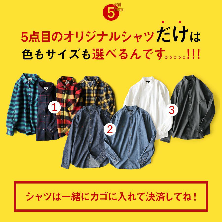 他の画像を見る 欲しかったのは、こんな『納得感』。 セット 福袋 『新作 オリジナル 暖か アウター』 & 『選べる オリジナル シャツ』 が入る 5点 セット(A-コーデセット) 販売価格 ¥ 9,999 税込 在庫切れ 詳細を見る お気に入りに登録する