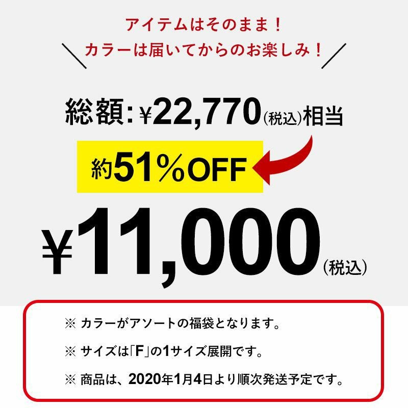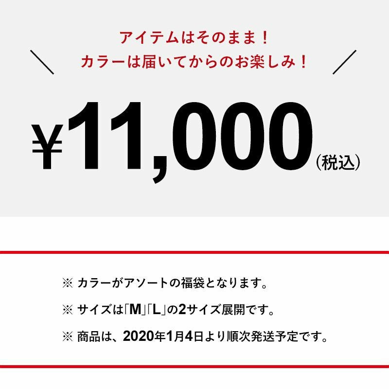 他の画像を見る 【数量限定】2020福袋 UNISEX 【toleur 福袋】 (トーラ) toleur 福袋 数量限定 ブランド 2020 新年 お年玉 福袋 2020新春 2020年 お正月 賀正 セット 運試し 販売価格 ¥ 11,000 税込 在庫切れ カートに入れる お気に入りに登録する