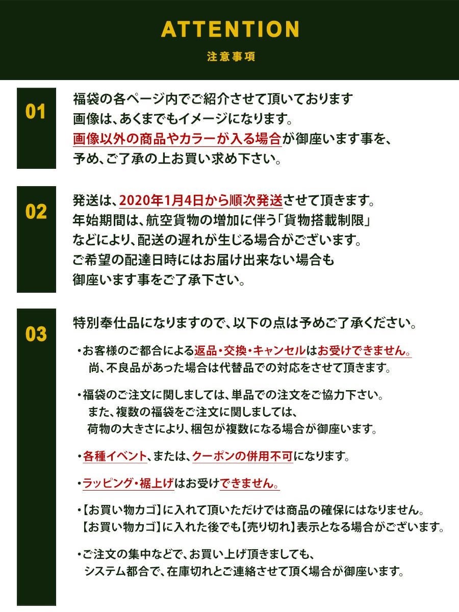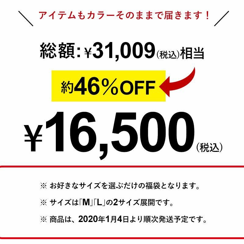 他の画像を見る 【数量限定】2020福袋 UNISEX 【SAIL 福袋】 (セイル) SAIL 福袋 数量限定 ブランド 2020 新年 お年玉 福袋 2020新春 2020年 お正月 賀正 セット 運試し 販売価格 ¥ 13,200 税込 在庫切れ カートに入れる お気に入りに登録する